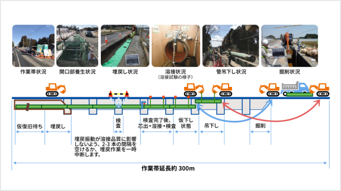 茨城幹線鉾田北工区工事仕様:圧力7MPa 延長 約11.5km 配管材料 API 5L L450M(X65) 管径 600A