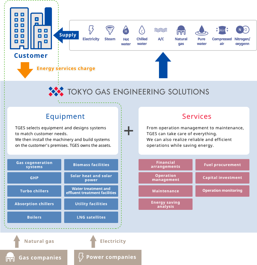 Only Tokyo Gas Engineering Solutions (TGES) can provide "one-stop solutions" for all the utility.