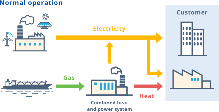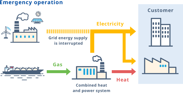 TGES can give consideration to energy security. Multiplexing electricity source and securing power source in case of emergency by combined heat and power empower customers to minimize the impact should an emergency arises.