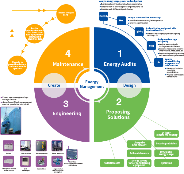 Professionals from the energy planning, engineering, and maintenance fields work closely together with dedication and responsibility to "design" and "create" the best utility solutions that fit individual customer’s requirements and circumstances.