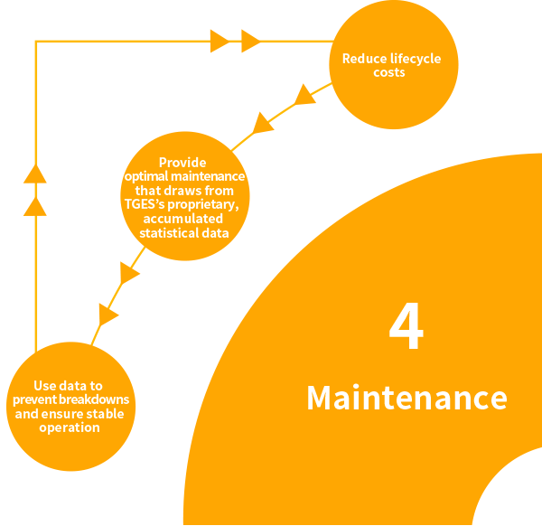 TGES performs maintenance for unexpected failure without additional cost for customers. Customer can level maintenance cost and avoid risk during the terms of contract.