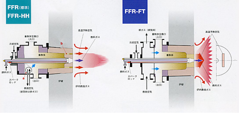 省エネ型リジェネバーナ(直火型)は炉内温度が常温時からFDIリジェネ(交番燃焼)運転が可能、バーナ部分とリジェネレータ部を一体化した軽量かつコンパクトな高効率高性能バーナです。