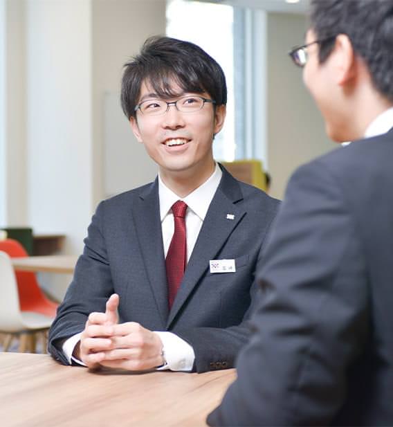 TGESの説明会で「営業職」という仕事に出会い、応募を決めました。面接では、学生時代の過ごし方やものごとの考え方など、人物や人柄に関する質問が多かったのが新鮮で印象的でした。就職活動の途中における、営業職への思い切った方向転換でしたが、人と話すことがもともと好きだったので何とかなりました(笑)。