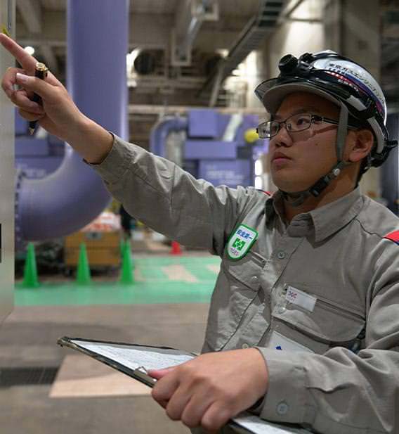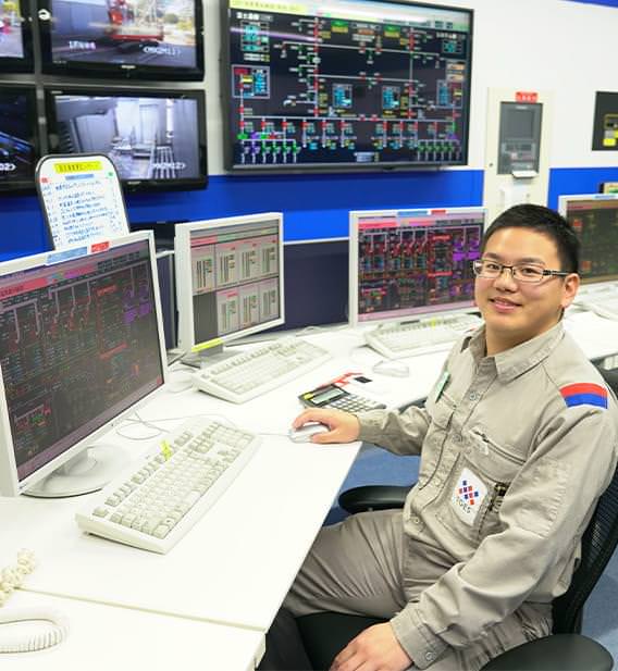 現在、幕張地域冷暖房センターで勤務しています。ここの要である中央監視室で様々な運転状況を示すモニターを前に座ると、自分の働く姿のイメージ通りで、一番好きな場所です。大学で機械工学を学び「とにかく大型機械を操作する仕事がしたい!」と思っていたので、ボイラや冷凍機などの稼働は緊張感もありますが、充実感でいっぱい。ここから蒸気・冷水・電気を供給することで地域のエネルギーを支えているという自負もあります。